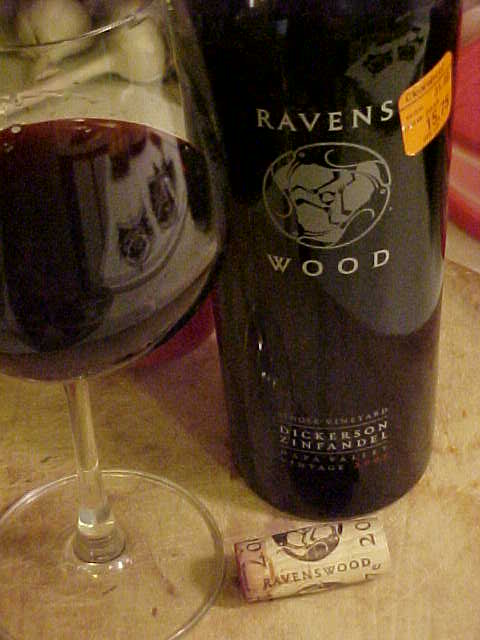 So with my lovely meal, I've cracked open a bottle of 2007 Ravenswood Dickerson Napa Valley Zinfandel, since the rich fruit flavor and smokiness of a good zin really pairs well with barbecue of all kinds! Now this wine is part of a series of wonderful single-vineyard zinfandels that Ravenswood produces, including the Pickberry, Teldeschi and Barricia zinfandels. And of course you know I'm a big fan of just about anything Ravenswood does!